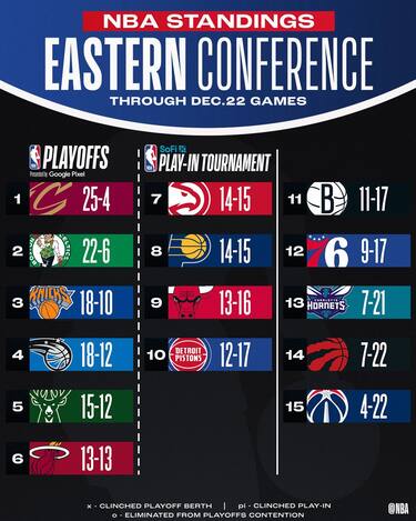 LA CLASSIFICA DELLA EASTERN CONFERENCE