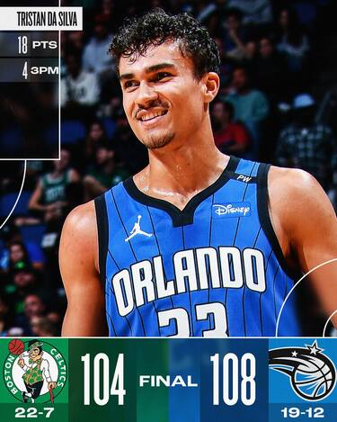Ennesima prova d’orgoglio dei Magic decimati dagli infortuni, che dopo aver chiuso il primo tempo a -15 rimontano e battono in volata Boston. Ai campioni in carica, privi di Jayson Tatum, non basta un Jaylen Brown da 35 punti e 9 rimbalzi, perché dopo aver controllato ritmo e punteggio nella prima parte di gara, nel secondo tempo i Celtics tirano con il 35.8% dal campo, vanno sotto e nonostante un tentativo di rimonta tardivo devono cedere il passo. Orlando trova una eccellente serata del rookie Tristan Da Silva, autore di 18 punti con 6/11 dal campo e della tripla che nel finale ricaccia indietro i Celtics regalando ai padroni di casa una vittoria più che meritata