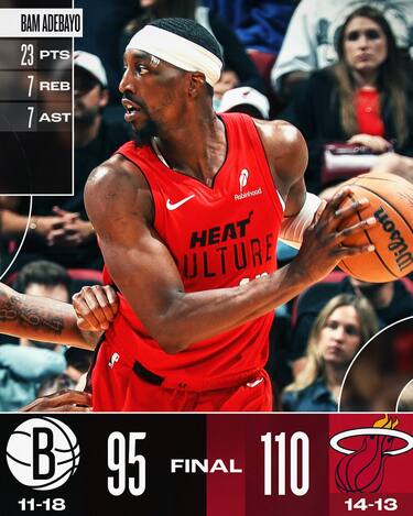Miami, reduce da tre sconfitte consecutive, ha bisogno di un ottimo secondo tempo per avere la meglio di una versione ancora una volta molto combattiva dei Nets. Brooklyn chiude il primo tempo con un parziale di 17-6 che la porta ad un solo punto di distanza, ma nella seconda parte di gara salgono in cattedra Bam Adebayo (23 punti, 7 rimbalzi e 7 assist) e Tyler Herro (17 punti, 12 rimbalzi e 9 assist) e gli Heat scappano senza più guardarsi indietro