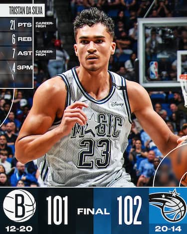 L’appoggio a canestro di Cole Anthony (10 punti e 3 assist) a 1.3 secondi dalla fine completa la rimonta da -17 dei Magic, che dopo un 4° quarto dominato rimettono il naso avanti. Dall’altra parte il tiro di Cam Thomas (25 punti e 6 rimbalzi) non va e Brooklyn finisce per perdere una partita che sembrava ormai decisa. Gli ospiti, in campo senza Dorian Finney-Smith, appena mandato ai Lakers in cambio di D’Angelo Russell, crollano nell’ultimo parziale, dove riescono a segnare solo 5 canestri dal campo. Orlando, invece, trova ancora una volta ottime risposte dal rookie Tristan da Silva, che chiude con 21 punti e 7 assist, risultando grande protagonista della rimonta con i 13 punti segnati nel solo 4° quarto