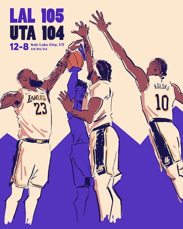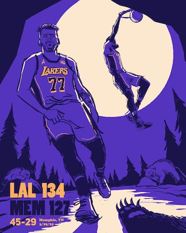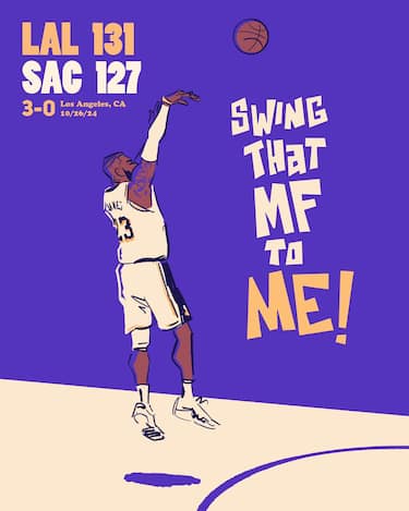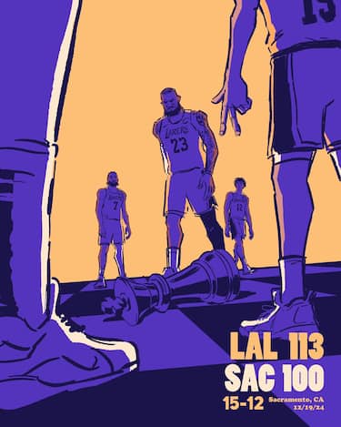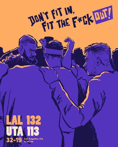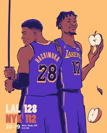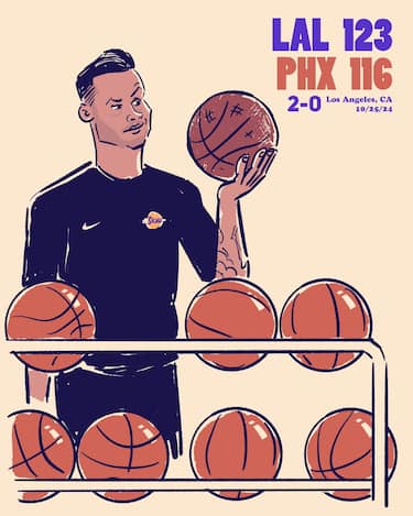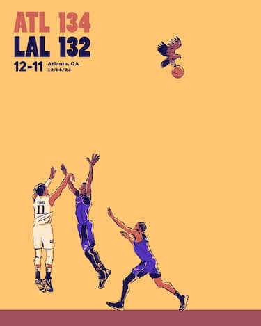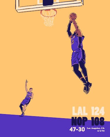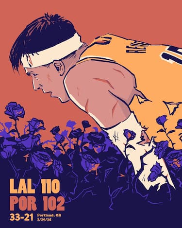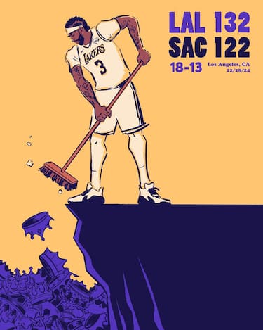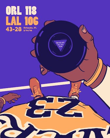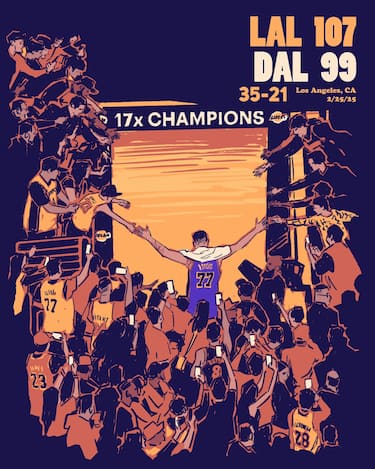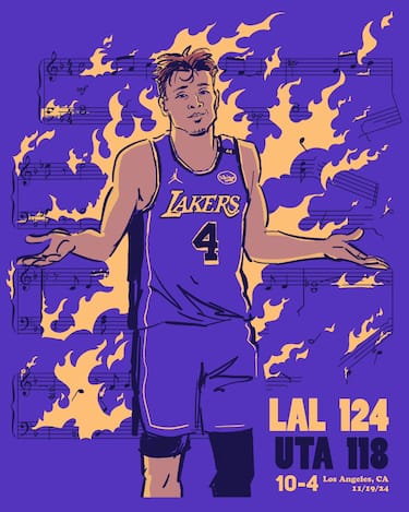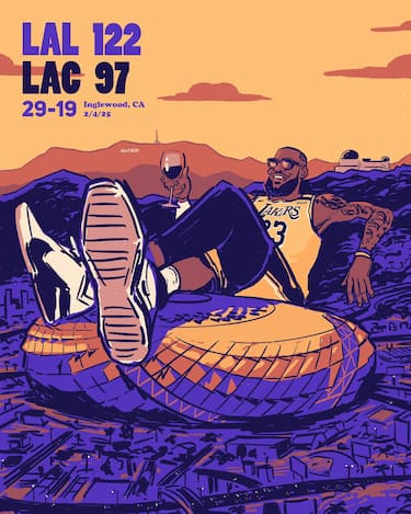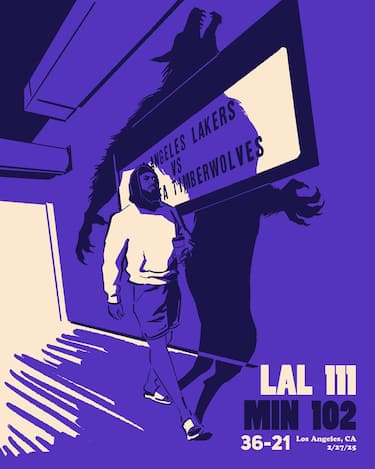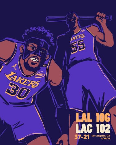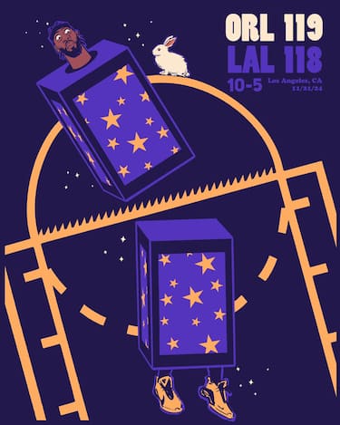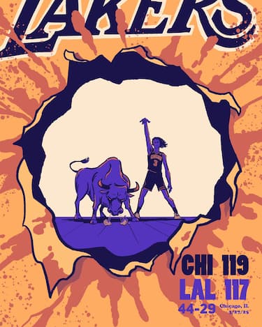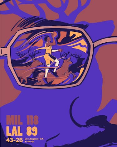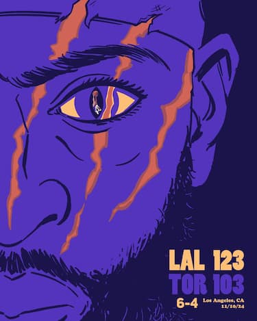 "Sono stato un tifoso dei Lakers fin dagli anni '80, l'era dello Showtime", ci ha raccontato Perkins, che per questa stagione 2024-25 dei gialloviola ha scelto di imbarcarsi in un progetto davvero ambizioso: "Guardare con la mente, e gli occhi, aperti a ogni partita dei Lakers per trovare lo spunto grafico, il momento o l'immagine migliore per raccontare ogni sfida. Questa angolazione ha reso ancora più divertente per me seguire la stagione dei gialloviola". E grazie alle sue immagini, che ci ha concesso di utilizzare, abbiamo deciso di farlo anche noi, riproponendo in un'unica gallery tutte le immagini create gara dopo gara.