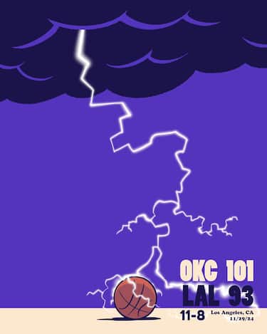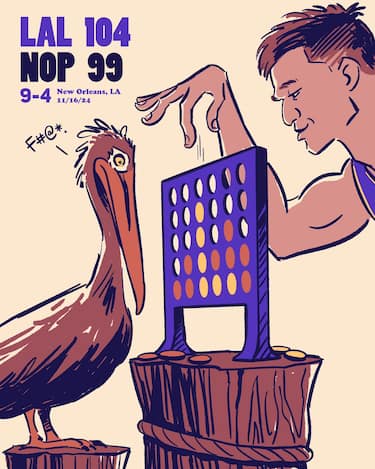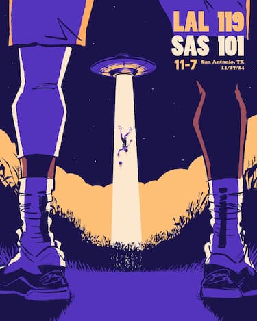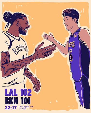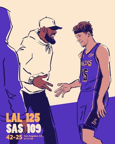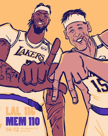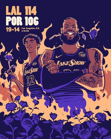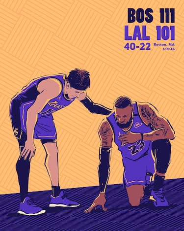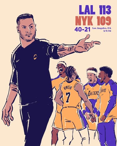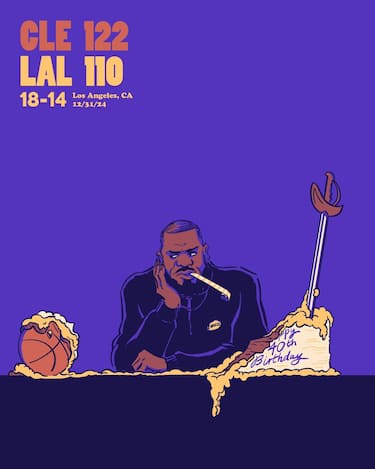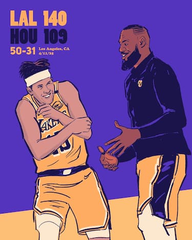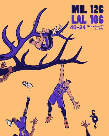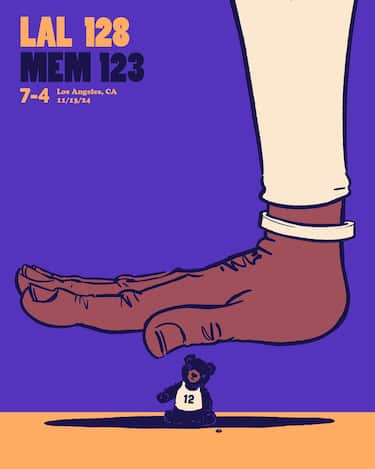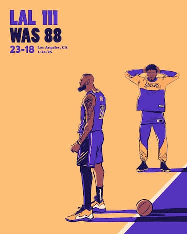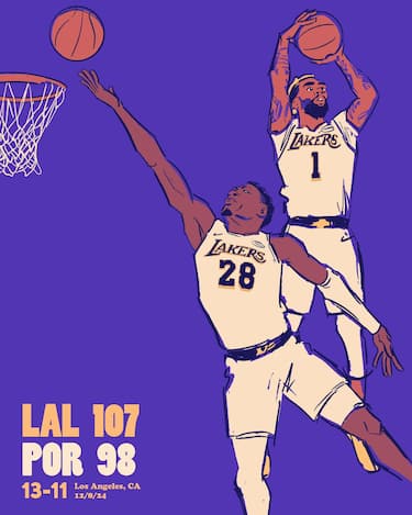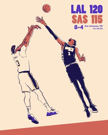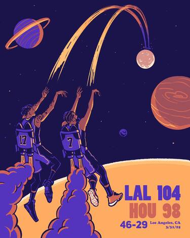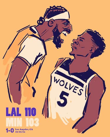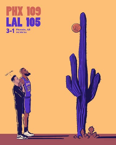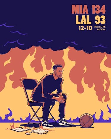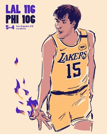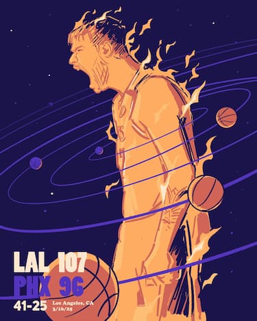 "Sono stato un tifoso dei Lakers fin dagli anni '80, l'era dello Showtime", ci ha raccontato Perkins, che per questa stagione 2024-25 dei gialloviola ha scelto di imbarcarsi in un progetto davvero ambizioso: "Guardare con la mente, e gli occhi, aperti a ogni partita dei Lakers per trovare lo spunto grafico, il momento o l'immagine migliore per raccontare ogni sfida. Questa angolazione ha reso ancora più divertente per me seguire la stagione dei gialloviola". E grazie alle sue immagini, che ci ha concesso di utilizzare, abbiamo deciso di farlo anche noi, riproponendo in un'unica gallery tutte le immagini create gara dopo gara.