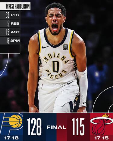 Problemi che al momento non toccano i Pacers, che si godono uno dei migliori Haliburton della stagione. La stella di Indiana segna 16 punti nel solo primo quarto e chiude alla fine con 33 punti e 15 assist con percentuali stellari (13/21 dal campo di cui 6/13 da tre), ispirando anche i 21 punti di Myles Turner e i 18 con 11 rimbalzi di Pascal Siakam per una squadra che forse è riuscita definitivamente a svoltare (record di 7-3 nelle ultime dieci partite)