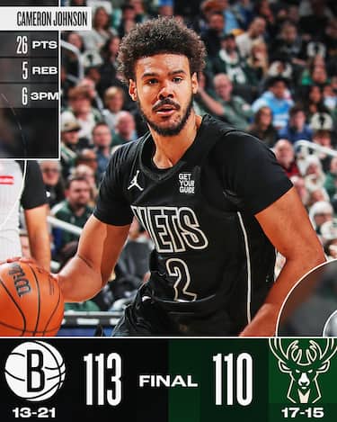 Sconfitta a sorpresa per i Bucks, che vanno sotto anche di 26 punti in casa sotto i colpi di Cam Johnson (26 punti) e Cam Thomas (24), ma realizzano un parziale di 20-0 negli ultimi 7 minuti di partita per tornare a contatto. I tentativi di sorpasso operati da Giannis Antetokounmpo (27 punti, 13 rimbalzi e 7 assist) e Damian Lillard (due errori da tre negli ultimi 4 secondi) però non vanno a buon fine e Brooklyn porta a casa il successo, vincendo per la terza volta su quattro in stagione contro i Bucks di cui entrambe le gare a Milwaukee negli ultimi 8 giorni