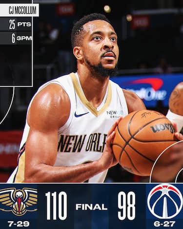Questa volta non arriva il “cinquantello” di CJ McCollum, che dopo aver travolto gli Wizards con 50 punti venerdì notte nella seconda sfida del weekend si limita a 25 (con un eccellente 6/11 da tre), ma New Orleans riesce comunque ad avere ancora la meglio su Washington. Ai padroni di casa, in campo senza Jordan Poole, non bastano i 28 punti di Kyle Kuzma e la doppia doppia del rookie Alexandre Sarr (18 punti e 11 rimbalzi), perché sul risultato finale pesa molto il loro inizio di partita pigro che regala ai Pelicans un vantaggio poi gestito fino alla fine