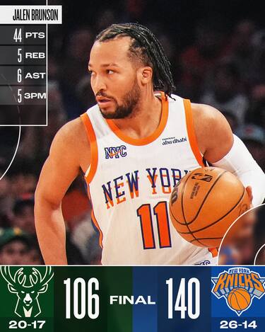 NEW YORK KNICKS-MILWAUKEE BUCKS 140-106