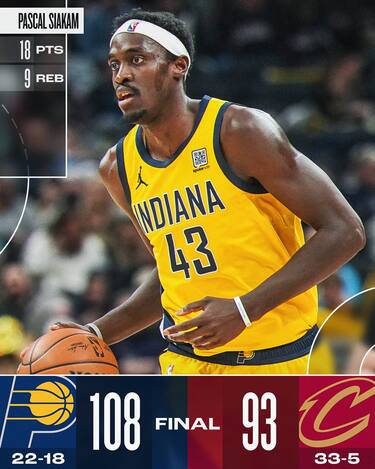 Cleveland incappa nella sua peggior prestazione stagionale in attacco (solo 40 punti in tutto il secondo tempo con 1/16 da tre) e cade per la quinta volta in stagione, interrompendo così la striscia di 12 successi consecutivi. I 20 punti di Darius Garland e i 19 di Donovan Mitchell, utili per salire a +15 nel terzo quarto, non bastano quando un maxi-parziale di 32-7 ribalta l’inerzia in favore dei Pacers, che mandano sei giocatori in doppia cifra guidati dai 19 di Andrew Nembhard e i 18 di Pascal Siakam. Tra questi non c’è Tyrese Haliburton che dopo un primo tempo da 2 punti e 5 assist non esce dagli spogliatoi per un problema al bicipite femorale, ma i compagni di squadra non ne accusano la mancanza