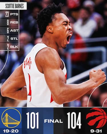 La tripla di Buddy Hield che potrebbe mandare tutti al supplementare va corta, a riprova di una serataccia al tiro per la guardia di Golden State, che chiude con 8 punti e 3/13 dal campo, e i Raptors portano a compimento la rimonta e il sorpasso arrivati con il parziale di 27-15 con cui chiudono la partita. Agli Warriors non bastano i 26 punti di Steph Curry e i 20 di Andrew Wiggins, mentre Toronto ottiene una rara soddisfazione all’interno della sua stagione complicata grazie a Scottie Barnes (23 punti, 8 rimbalzi e 6 assist) e alla doppia doppia da 13 punti e 13 rimbalzi di Jakob Poeltl