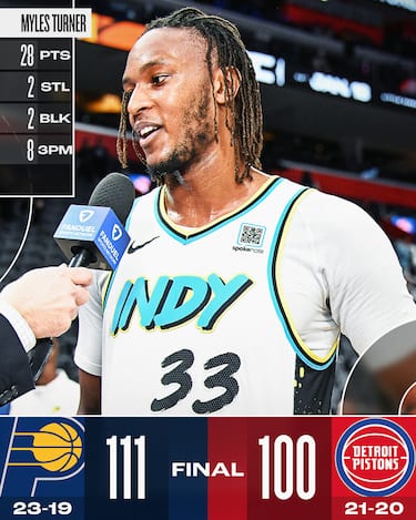 Settima vittoria nelle ultime otto partite per Indiana, che a Detroit continua il suo momento positivo affidandosi a un Myles Turner caldissimo dall’arco (8/11 da tre per 28 punti finali) e a Pascal Siakam (26 punti), ritrovando un Tyrese Haliburton da 17 punti e 8 assist. I Pacers rimangono sempre avanti dalla metà del primo quarto in poi toccando anche il +20 nel terzo quarto, resistendo al tentativo di rimonta di Detroit fino al -6 nonostante le 19 palle perse