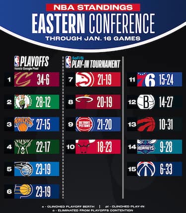 Cleveland si ferma ancora (prima sconfitta stagionale contro una squadra della Western Conference) ma non perde terreno nei confronti di Boston, mentre Detroit scende al nono posto. Le otto sconfitte di Washington la lasciano ultimissima in classifica con la peggior striscia di ko aperta in tutta la lega