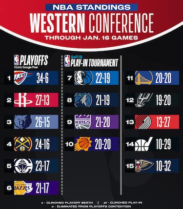 OKC aggancia Cleveland col miglior record della NBA, allungando a quattro la propria striscia di successi. I Clippers con tre successi in fila si riavvicinano al quarto posto di Denver, mentre Sacramento risale fino al nono posto superando il 50% di vittorie (8-2 il record da quando Doug Christie è allenatore ad interim)