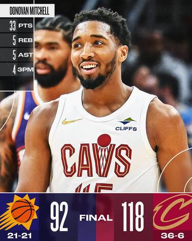 Dopo aver messo le mani sulla partita nel 2° quarto, Cleveland tiene sempre a distanza i Suns e a occuparsi personalmente della faccenda è Donovan Mitchell. 23 dei suoi 33 punti arrivano infatti in un secondo tempo durante il quale la difesa dei Suns non ha la minima idea di come fermarlo