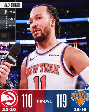 Agli Hawks non basta mandare ben 7 giocatori in doppia cifra, perché dall’altra parte i Knicks controllano il ritmo di gioco e nella seconda metà di gara danno lo strappo decisivo e conducono fino alla fine. Mikal Bridges trova una grande serata e chiude con 26 punti tirando 12/17 dal campo, mentre dall’altra parte Trae Young prova come può a guidare i suoi 27 punti e 6 assist non bastano per avere la meglio su New York