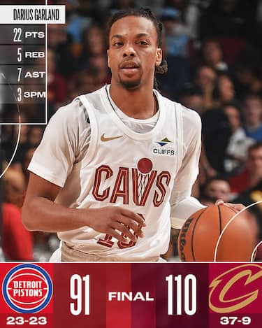 I Cavs interrompono la loro striscia di tre sconfitte in fila (mai successo finora in stagione) avendo ragione dei Pistons senza perdere neanche un quarto. Darius Garland e Donovan Mitchell combinano per 43 punti (22 il primo e 21 il secondo) vincendo per l’11^ volta consecutiva contro Detroit e salendo a un record di 22-3 in casa. I Pistons hanno 22 punti da parte di Cade Cunningham e 19 di Malik Beasley, ma per il resto pagano le pessime serate al tiro di Ausar Thompson (0/6) e Tobias Harris (1/9), tirando sotto il 39% di squadra e sotto il 28% da tre punti
