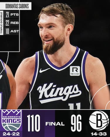 Le partite come quelle contro i Nets sono quelle in cui Domantas Sabonis impone tutta la sua fisicità, realizzando la sua settima tripla doppia stagionale con 21 punti, 22 rimbalzi e 10 assist in una serata da 8/10 al tiro. De’Aaron Fox segna 30 punti, DeMar DeRozan ne mette 17 e Malik Monk ne aggiunge 16 con 9 assist per una squadra che dopo il cambio in panchina con coach Doug Christie continua a performare bene