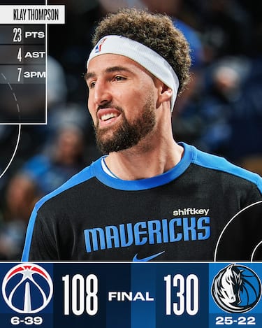 Klay Thompson pareggia un record di franchigia realizzando 7 triple nel solo primo quarto (23 i suoi punti alla fine), indirizzando il match nelle mani dei padroni di casa avanti per 42-16 già dopo i primi 12 minuti e capaci di toccare anche il +38 nel corso della partita. Olivier-Maxence Prosper ne approfitta per pareggiare il suo massimo in carriera a quota 20, mentre gli Wizards finiscono la loro trasferta da sei gare con la 14^ sconfitta consecutiva, allungando a 21 anche la loro striscia di ko lontano da casa dove non vincono dal 28 ottobre, alla terza gara stagionale
