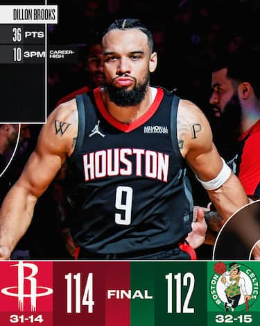 I campioni in carica non sono riusciti a trovare una contromisura alle ali dei Rockets, in particolare Amen Thompson (che oltre al canestro della vittoria ha chiuso con 33 punti e 9 rimbalzi con 13/19 al tiro) e soprattutto un Dillon Brooks clamoroso da 36 punti e 10/15 dalla lunga distanza, segnando più triple di tutto il quintetto dei Celtics messo assieme. Coach Ime Udoka può così togliersi la soddisfazione di battere la sua ex squadra a domicilio, nonostante un Alperen Sengun da 11 punti (pur con 9 rimbalzi e 9 assist) e il backcourt titolare da soli 19 (12 per Jalen Green con 3/13 al tiro, 7 per Fred VanVleet con 2/9)