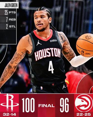 Nel recupero della partita originariamente rimandata per la tormenta di neve che aveva colpito Atlanta la scorsa settimana, i Rockets danno lo strappo decisivo nel 3° quarto e riescono a ricacciare indietro i tentativi di rimonta da parte dei padroni di casa nell’ultimo quarto di gioco. In una partita in cui entrambe le squadre tirano male da tre, a fare la differenza sono i punti segnati nel pitturato, che premiano Houston 58-44. Jalen Green è il migliore tra gli ospiti con 25 punti e 7 rimbalzi, anche se tira 11/24 dal campo, mentre ad Atlanta non bastano i 21 punti e 9 assist di Trae Young, che però si sveglia quanto è forse ormai troppo tardi per gli Hawks