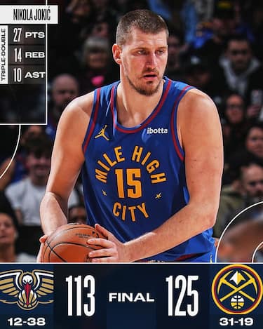 27 punti, 14 rimbalzi, 10 assist e 9/13 dal campo, basterebbero le cifre per descrivere l’ennesima prestazione ai limiti della perfezione messa in campo da Nikola Jokic contro New Orleans. Quando capisce che la sfida con i Pelicans è meno semplice del previsto, il serbo si mette al lavoro ed è lui a far girare l’attacco dei Nuggets che alla fine riesce ad avere la meglio
