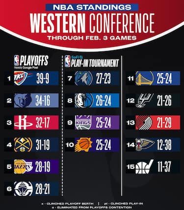 LA CLASSIFICA DELLA WESTERN CONFERENCE