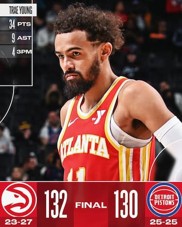 Gli Hawks arrivano a Detroit reduci da 8 sconfitte consecutive e un po’ incerottati a causa delle tante assenze, ma giocano una partita tenace, mandando ben 7 giocatori in doppia cifra con De’Andre Hunter, rientrato in quintetto al posto dell’infortunato Jalen Johnson, protagonista con 20 punti. Dall’altra parte Detroit conferma di vivere un ottimo momento e guidata dal solito Cade Cunningham, in doppia doppia con 30 punti e 14 assist, non molla su ogni pallone e trova anche 22 punti dal veterano Tobias Harris. Ne esce una partita combattutissima decisa quasi sulla sirena dal migliore in campo