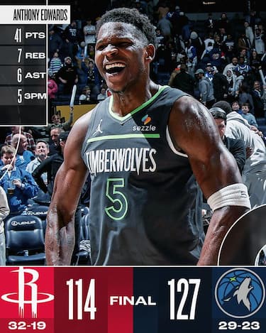 Dopo averne segnati 49 ai non irresistibili Bulls, Anthony Edwards si conferma inarrestabile anche di fronte ad un avversario ben più temibile come Houston. Alla fine i punti di Ant saranno 41, a cui la stella di Minnesota aggiungerà anche 7 rimbalzi e 6 assist in un’altra prova da autentico leader della squadra