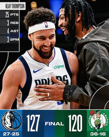 Nel rematch delle ultime Finals, a sorpresa sono i Mavs, che non possono ancora schierare il loro nuovo acquisto Anthony Davis, fermo per un problema alla zona addominale, ad avere la meglio. Dallas veleggia anche sul +27 grazie ai 25 punti di Klay Thompson e ai 22 in uscita dalla panchina di Spencer Dinwiddie. Curiosamente i Celtics danno il via a una possibile rimonta quando coach Joe Mazzulla, ormai rassegnato alla sconfitta, toglie i suoi titolari e il solito Payton Pritchard (21 punti e 6 assist) guida la second unit a un’impresa solo sfiorata