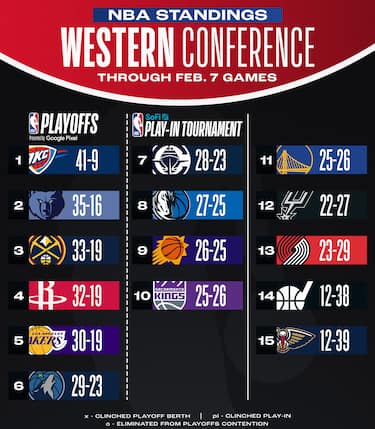 OKC non perde terreno continuando a mantenere in singola cifra il numero di sconfitte, mentre Phoenix può provare a insidiare l’ottavo posto di Dallas. San Antonio non approfitta delle sconfitte di Sacramento e Golden State, con cui si giocherà un posto al torneo play-in da qui al termine della stagione
