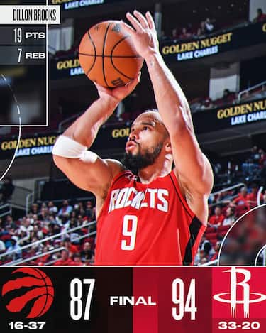 È il quarto quarto quello che decide la sfida tra Rockets e Raptors: i texani se lo aggiudicano per 36-24 e tornano finalmente alla vittoria dopo ben 6 sconfitte consecutive. Pur tirando male (il 36% dal campo), dicono grazie a una panchina capace di produrre 43 punti (con i 14 del veteranissimo Jeff Green), mentre del quintetto si salvano Brooks (19 punti) e Jalen Green (18) che però tirando complessivamente 12/35. Toronto ha 20 punti da parte di Quickley ma non molto altro.