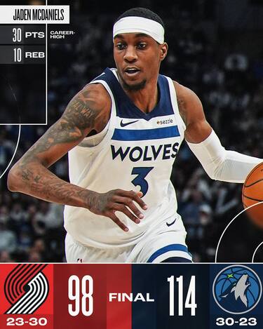 A Minnesota serve un 4° quarto quasi perfetto, chiuso con il parziale di 38-14, per battere Portland, reduce da 6 vittorie consecutive. I Blazers crollano nell’ultimo parziale, ma in precedenza confermano quanto di buono fatto vedere nelle ultime due settimane con Anfernee Simons (21) ancora una volta protagonista. Il protagonista per i T’Wolves è invece un Jaden McDaniels da 30 punti e 10 rimbalzi, mentre Naz Reid (23 punti) e Nickeil Alexander-Walker (21) fanno bene le veci degli assenti Julius Randle e Athony Edwards
