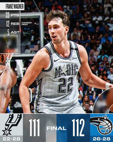 L’infortunio che gli ha fatto saltare una buona fetta di stagione sembra ormai un ricordo lontano, perché anche contro San Antonio Franz Wagner è il migliore per Orlando e trascina i suoi all’esaltante vittoria in rimonta con una prestazione da 33 punti, 12 rimbalzi e 5 assist
