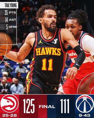 Il momento della stagione non è dei più felici per gli Hawks, scombussolati anche da diversi movimenti di mercato avvenuti poco prima della trade deadline, ma anche a Washington Trae Young si conferma leader della squadra. Per la stella di Atlanta arriva un’altra doppia doppia da 35 punti e 14 assist in 35 minuti giocati