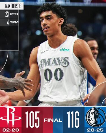 In una giornata in cui gli occhi di tutti sono puntati su Anthony Davis, al suo esordio assoluto coi Mavs, è Max Christie a prendersi la scena nel finale. Il neo-arrivato dai Lakers chiude con 23 punti e 4/5 da tre punti e risulta assolutamente decisivo per permettere ai padroni di casa di rimanere sempre avanti nel punteggio contro i Rockets, con Alperen Sengun (30 punti), Jalen Green (24) e Amen Thompson (20) che non riescono a evitare la sesta sconfitta in fila. Dallas capitalizza così su 31 minuti assolutamente favolosi di Davis: 26 punti, 16 rimbalzi, 7 assist e 3 stoppate prima di uscire per un infortunio senza contatto nella zona dell’inguine e del basso addome, rientrando negli spogliatoi senza più uscirne così come aveva già fatto PJ Washington nel primo tempo per un problema alla caviglia