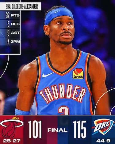 In trasferta a OKC, gli Heat accarezzano a lungo l’idea di fare il colpaccio guidati dalla doppia doppia da 27 punti e 15 rimbalzi di Bam Adebayo e all’inizio del 4° quarto in vantaggio 93-83. Da lì in poi, però, i Thunder piazzano un parziale devastante di 24-0 con cui annichiliscono Miami e invertono la tendenza della partita grazie anche ai 18 punti di Lu Dort e ai 17 di Jalen Williams, ma soprattutto grazie a una difesa che nell’ultima frazione di gioco costringe gli avversari al 16.7% dal campo