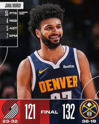 La stagione vissuta da Jamal Murray è stata fin qui un po’ deludente, ma il canadese nelle ultime settimane sembra aver recuperato la miglior forma e lo conferma alla grande nella gara contro i Blazers. Il 20/36 al tiro, con 7/15 dalla lunga distanza, gli vale infatti il career high a quota 55 e l’ovazione del pubblico di Denver