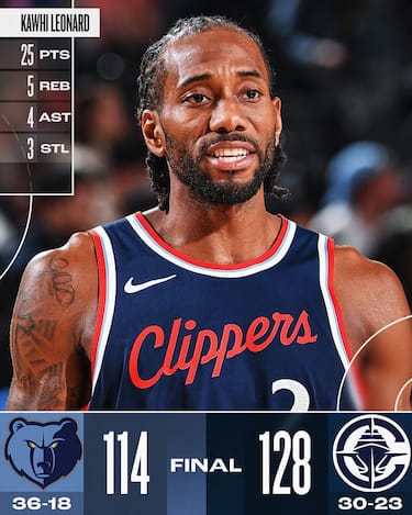 Solida vittoria per i Clippers, che subiscono la partenza lanciata di Memphis ma poi recuperano e invertono la tendenza della gara tra il 2° e il 3° quarto grazie soprattutto a un Kawhi Leonard sempre più in forma e autore di 25 punti e alla doppia doppia da 18 punti e 10 assist di James Harden. A Memphis, scesa in campo senza Ja Morant, non bastano invece i 23 punti del solito Desmond Bane e i 14 con anche 7 rimbalzi in uscita di Santi Aldama