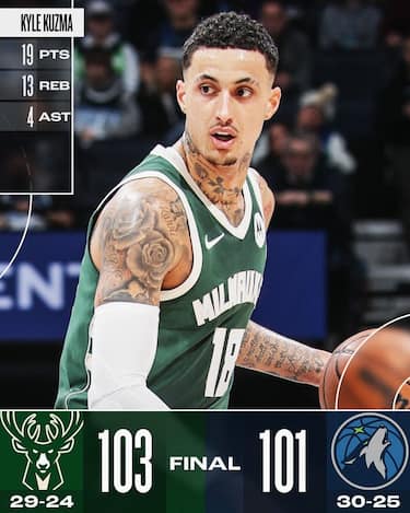 La tripla di Anthony Edwards (28 punti e 7 rimbalzi) sulla sirena finale va corta e ai T’Wolves non riesce di battere una Milwaukee priva sia di Damian Lillard che di Giannis Antetokounmpo, vanificando così anche le doppie doppie di Naz Reid (22 punti e 13 rimbalzi) e Rudy Gobert (20 punti e 14 rimbalzi). Doppia doppia anche per Kyle Kuzma, ultimo arrivato e migliore in campo per i Bucks con 19 punti e 13 rimbalzi, che trova una valida spalla in Gary Trent Jr., autore di 21 punti in uscita dalla panchina