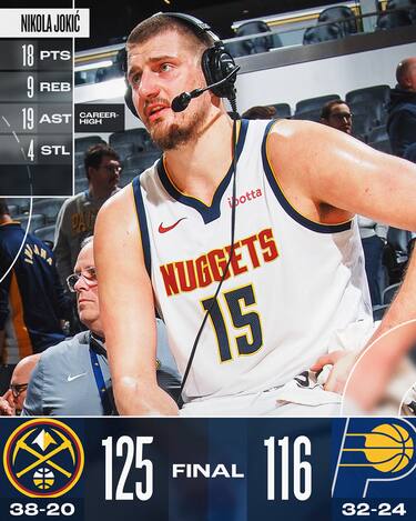 Alla carriera già incredibile di Nikola Jokic mancava una serata come quella vissuta a Indiana, dove il serbo trascina i suoi alla 9^ vittoria nelle ultime 10 partite con 18 punti, 9 rimbalzi ma soprattutto 19 assist, massimo in carriera. I Nuggets, sempre in controllo del ritmo di gara, trovano anche 25 punti da un Aaron Gordon che sembra aver recuperato definitivamente la forma migliore e passano senza grandi patemi sul campo dei Pacers, a cui non bastano i 23 puntisegnati da Myles Turner e la doppia doppia da 19 punti e 15 assist di Tyrese Haliburton