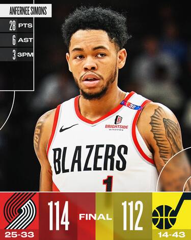 Vittoria in trasferta per i Blazers, che al termine di una partita molto combattuta hanno la meglio sui Jazz grazie soprattutto ai 28 punti di Anfernee Simons e ai 18 con anche 14 rimbalzi e 5 assist di un Deni Avdija sempre più barometro della squadra. A Utah, in campo con tante riserve a causa di una serie di infortuni e problemi fisici, non bastano i 21 punti e 5 assist di Keyonte George e i 20 con anche 11 rimbalzi del rookie Kyle Filipowski, entrambi protagonisti del tentativo di rimonta finale non del tutto riuscito da parte dei padroni di casa