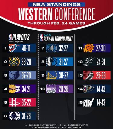 Sconfitta tutto sommato indolore per Oklahoma City, che rimane prima a Ovest con ampio distacco, mentre il successo sui Thunder regala ai T'Wolves nuove speranze di agguantare il 6° posto ora in mano ai Clippers, Denver vince la 9^ partita delle ultime 10 e solidifica il suo 2° posto nella classifica della Western Conference