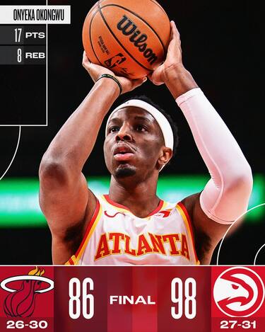Vittoria importante, soprattutto per le implicazioni di classifica nella zona play-in della Eastern Conference, per Atlanta, che gioca una gara solida mandando 6 giocatori in doppia cifra e battendo gli Heat. Le due stelle più attese, Trae Young (11 punti e 4/14 al tiro) e Tyler Herro (11 punti e 4/19 dal campo) deludono, e allora a fare la differenza è la difesa degli Hawks, che concede a Miami un disastroso 32.1% al tiro di squadra e un ancor più disastroso 17.5% complessivo da dietro la linea dei tre punti