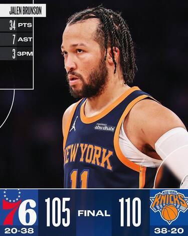 Vittoria meno facile del previsto per i Knicks, che restano avanti per quasi tutta la partita ma nel finale devono subire di rientro e il sorpasso da parte dei Sixers, a cui i 30 punti di Tyrese Maxey e i 25 di Paul George non bastano per evitare la 9^ sconfitta consecutiva. Philadelphia trova anche 27 punti da Kelly Oubre Jr., terzo giocatore in doppia cifra per gli ospiti, mentre New York si gode un Mikal Bridges da 28 punti con 12/18 al tiro e compensa l’assenza di Karl-Anthony Towns sotto canestro grazie ai 17 rimbalzi del solito Josh Hart