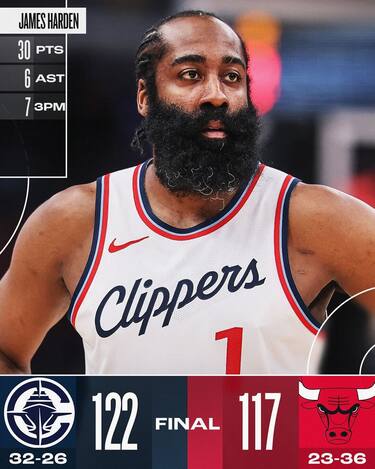 I Clippers sono senza Norman Powell nella trasferta di Chicago e allora a prendersi sulle spalle l’attacco ci pensa James Harden, che contro i Bulls sfodera una versione ‘vintage’ del suo gioco e chiude da migliore in campo con 30 punti, 6 assist e 7/14 al tiro da tre