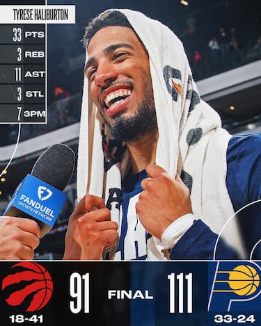 Alla stagione, poco più che discreta, disputata fin qui da Tyrese Haliburton mancava forse una prestazione davvero importante, che arriva nella serata contro i Raptors. Il playmaker dei Pacers domina con 33 punti, 11 assist e tira 12/15 dal campo e 7/9 da tre, esaltando il pubblico di casa con alcuni momenti di pallacanestro ad alto tasso di spettacolarità