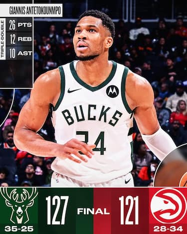 Anche ad Atlanta, il trascinatore dei Bucks è uno Giannis Antetokounmpo in forma strepitosa: il greco domina su entrambi i lati del campo e chiude con la tripla doppia da 26 punti, 12 rimbalzi e 10 assist che fanno la differenza e portano Milwaukee ad un’altra preziosa vittoria