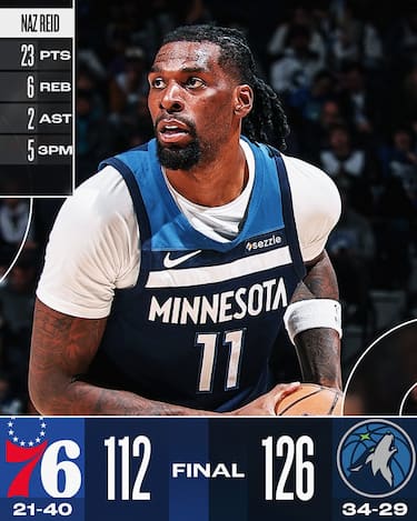 Contrariamente a quanto successo con Golden State, nella trasferta di Minneapolis ai Sixers non basta l’ottima serata di Quentin Grimes per strappare la vittoria. L’ex Mavs e Knicks prova a compensare l’assenza di Tyrese Maxey, che si unisce a quella ormai scontata di Joel Embiid, con 30 punti, Kelly Oubre Jr. ne aggiunge 24 ma i T’Wolves, che mandano 7 giocatori in doppia cifra e hanno 23 punti da un Naz Reid sempre più leader silenzioso della squadra, accelerano quando serve e fanno pesare il loro maggior talento complessivo