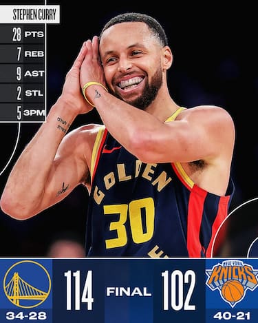 È ancora una volta Steph Curry, in dubbio alla vigilia ma autore di un secondo tempo da 20 punti e di una prova da 28 e 9 assist complessivi, a trascinare gli Warriors alla vittoria al Madison Square Garden. Golden State piazza un parziale di 11-0 a metà del 4° quarto che crea il vantaggio decisivo per gli ospiti, che trovano anche 19 punti a testa da Jimmy Butler e Brandin Podziemski. Ai Knicks, privi di Karl-Anthony Towns, assente per motivi personali, non bastano i 29 punti di OG Anunoby, i 25 di Jalen Brunson e nemmeno l’esordio stagionale di Mitchell Robinson (7 punti e 5 rimbalzi)