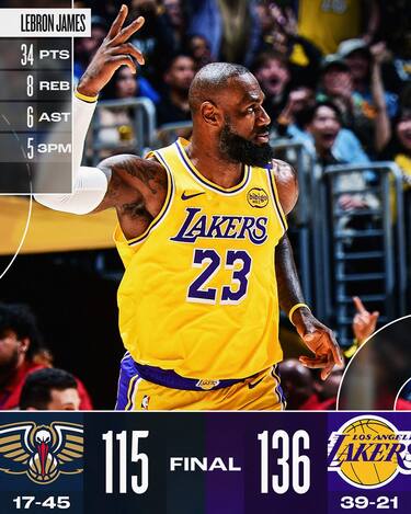 LOS ANGELES LAKERS-NEW ORLEANS PELICANS 136-115