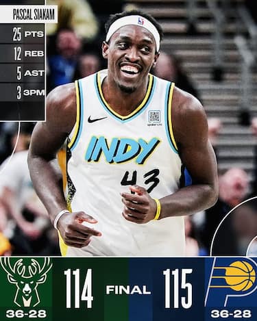 È una giocata da 4 punti di Tyrese Haliburton, che a 3.4 secondi dalla fine riceve palla dalla rimessa, segna la tripla in fadeaway subendo anche il fallo e segnando il libero aggiuntivo, a regalare ai Pacers una vittoria importantissima per gli equilibri di classifica perché permette di agganciare proprio Milwaukee al 4° posto della Eastern Conference. Giannis Antetokounmpo (19 punti, 17 rimbalzi e 7 assist) avrebbe la possibilità di ribaltare il tutto, ma la sua tripla in corsa sulla sirena finale sfiora a malapena il ferro e i Bucks devono cedere il passo ai padroni di casa