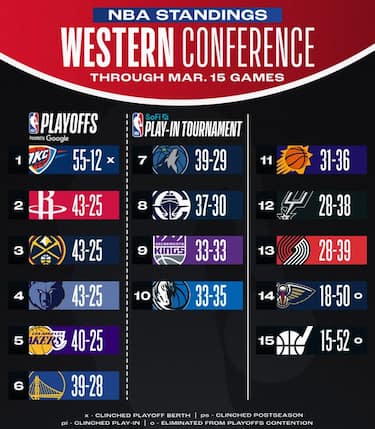 Al momento il tabellone dei playoff propone due super sfide già al primo turno: New York contro Detroit a Est e Denver contro Golden State a Ovest, mentre Cleveland e Oklahoma City hanno ormai quasi la certezza di chiudere al primo posto a Est e a Ovest